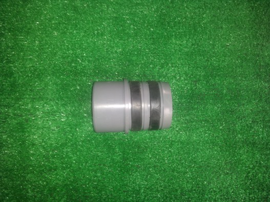 4.将套有胶圈的PVC软带接头插入PE薄壁水带内部,要保证两个胶圈全部没入水带内部。