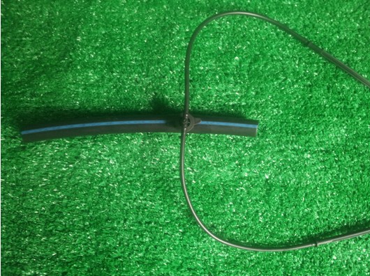3.将滴箭带有长流道的一端插入毛管里面,确保整个流道全部插入毛管内部。