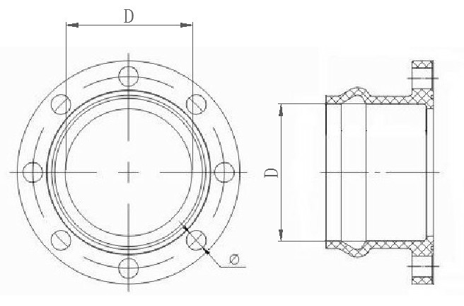 ※若购买此种管件用于管材连接,需同时购买相配套的橡胶密封圈、法兰垫片、螺栓,具体安装方式及注意事项详见《PVC-U柔性管件连接方法》。