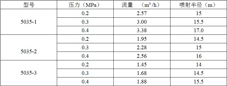 3. 属于中远射程,采用水流撞击式驱动,工作稳定,H型耐磨密封垫,弹簧保护盖和流道衬套,能防止砂粒和尘土进入及过度磨损,延长喷头寿命。