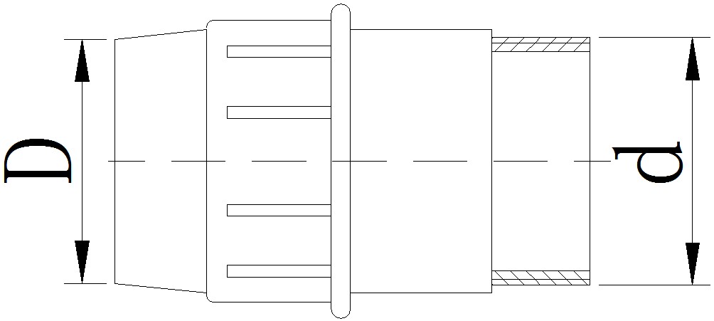 ※若购买此种管件用于管材连接,需着重注意倒刺圈的安装方向,具体安装方式及注意事项详见《外锁式管件安装方法》。