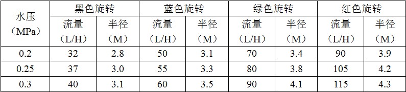 注:P2003旋转喷头型号根据喷嘴的颜色进行区分。