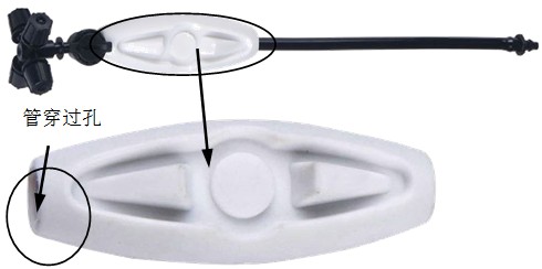2. 将微喷管一端穿过配重即可。